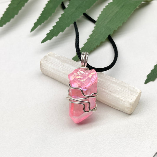 Pink Aura Quartz Necklace